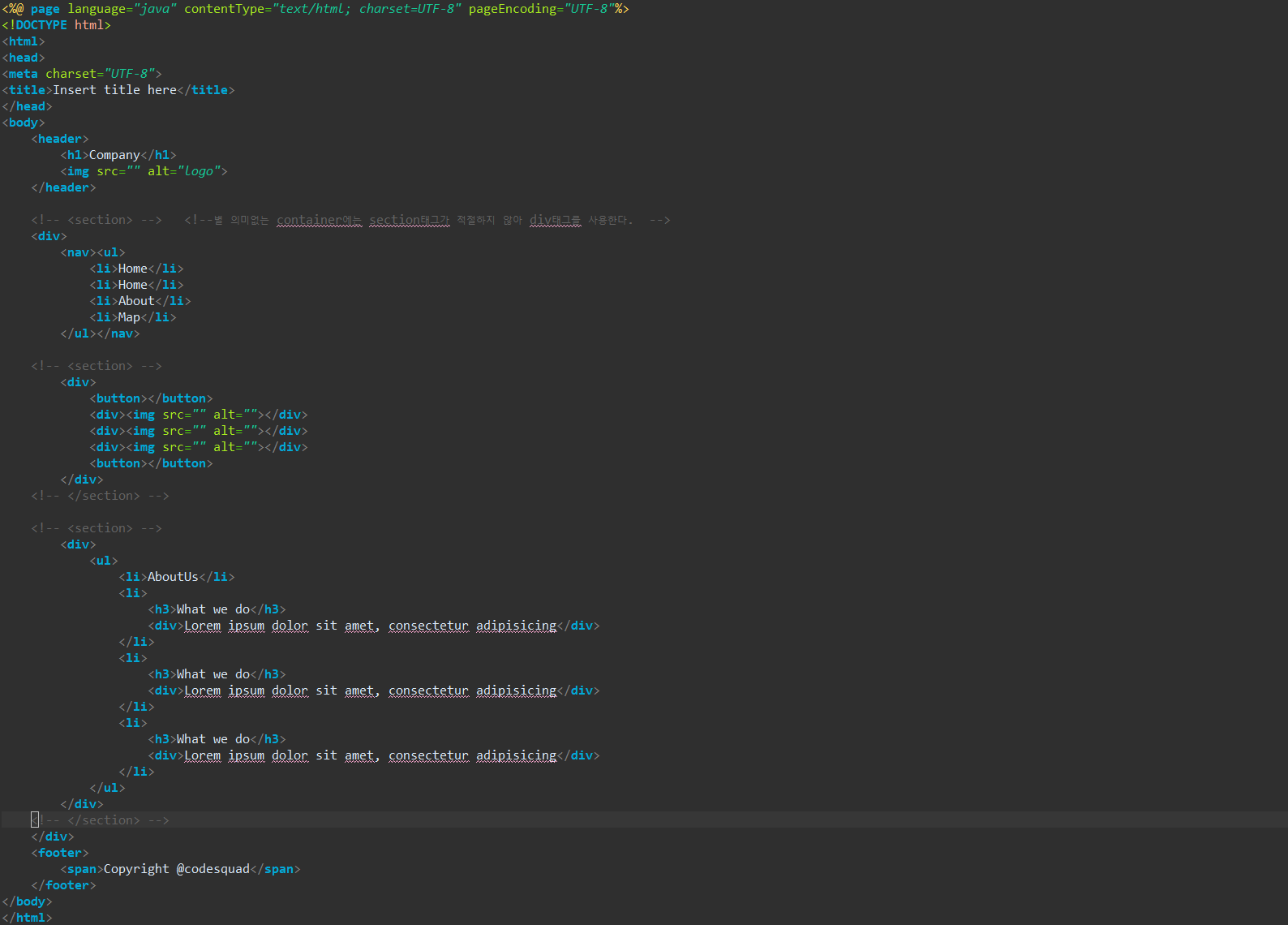 3) 영역 안에 또 다른 영역이 있다면 점점 안으로 좁혀가면서 HTML tag를 사용하면서 완성해가기