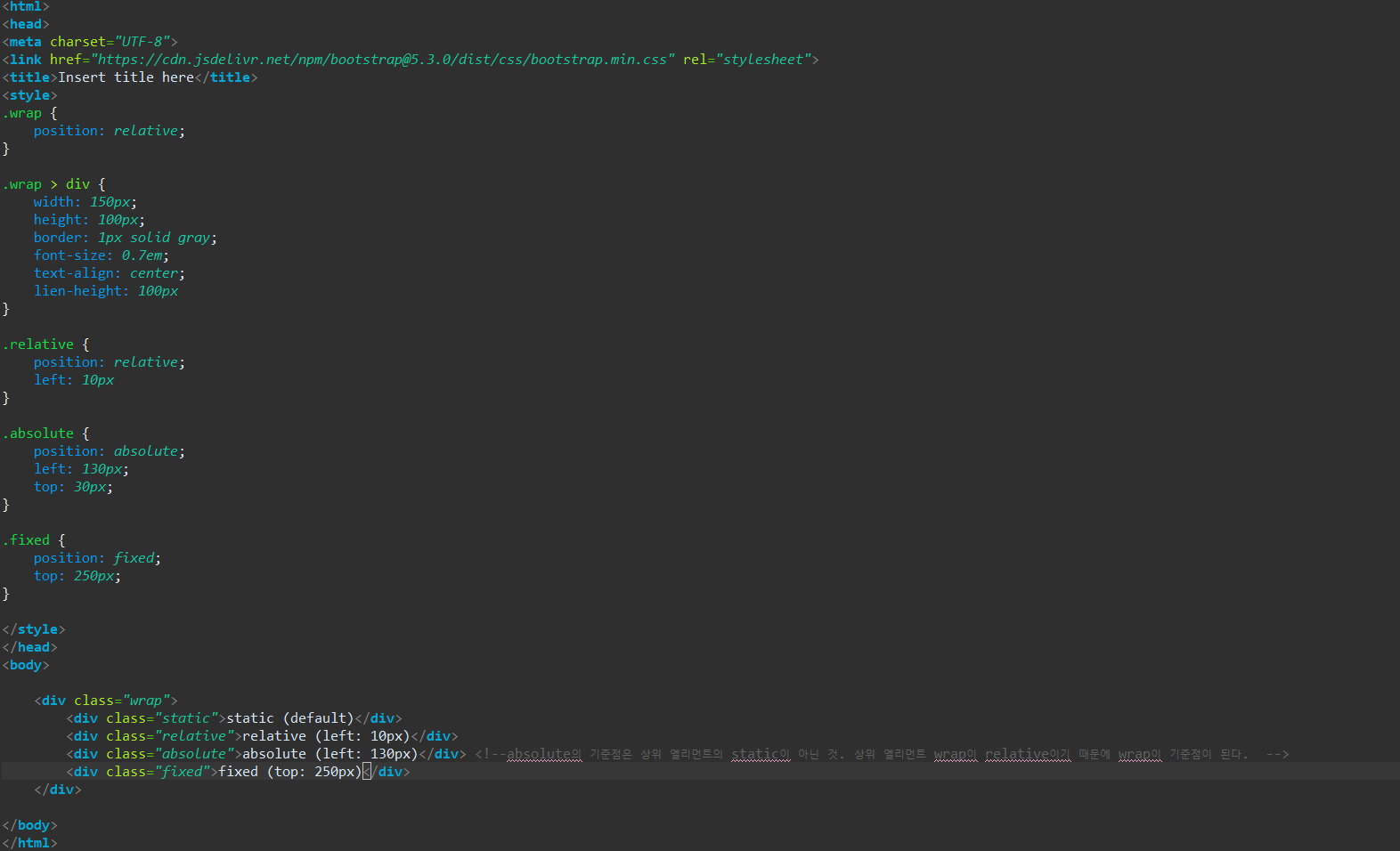 2) absolute는 기준점에 따라서 특별한 위치에 위치한다.