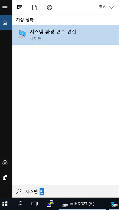 찾기 버튼을 누른 다음 시스템 환경 변수 편집을 찾아서 선택한다.