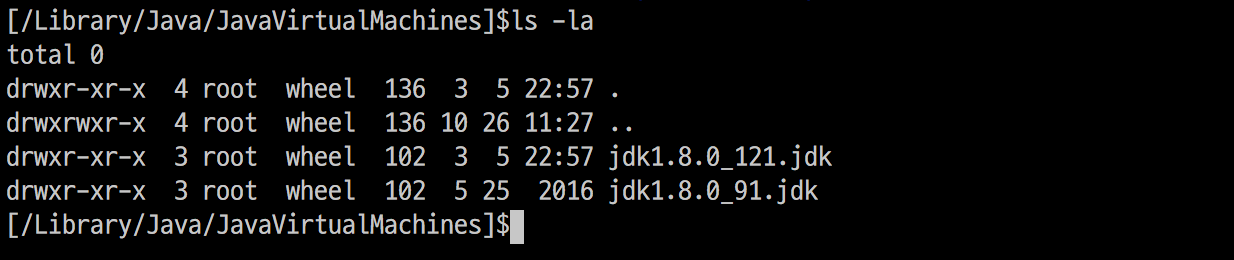 cd /Library/Java/JavaVirtualMachines/jdk1.8.0_121.jdk/Contents/Home