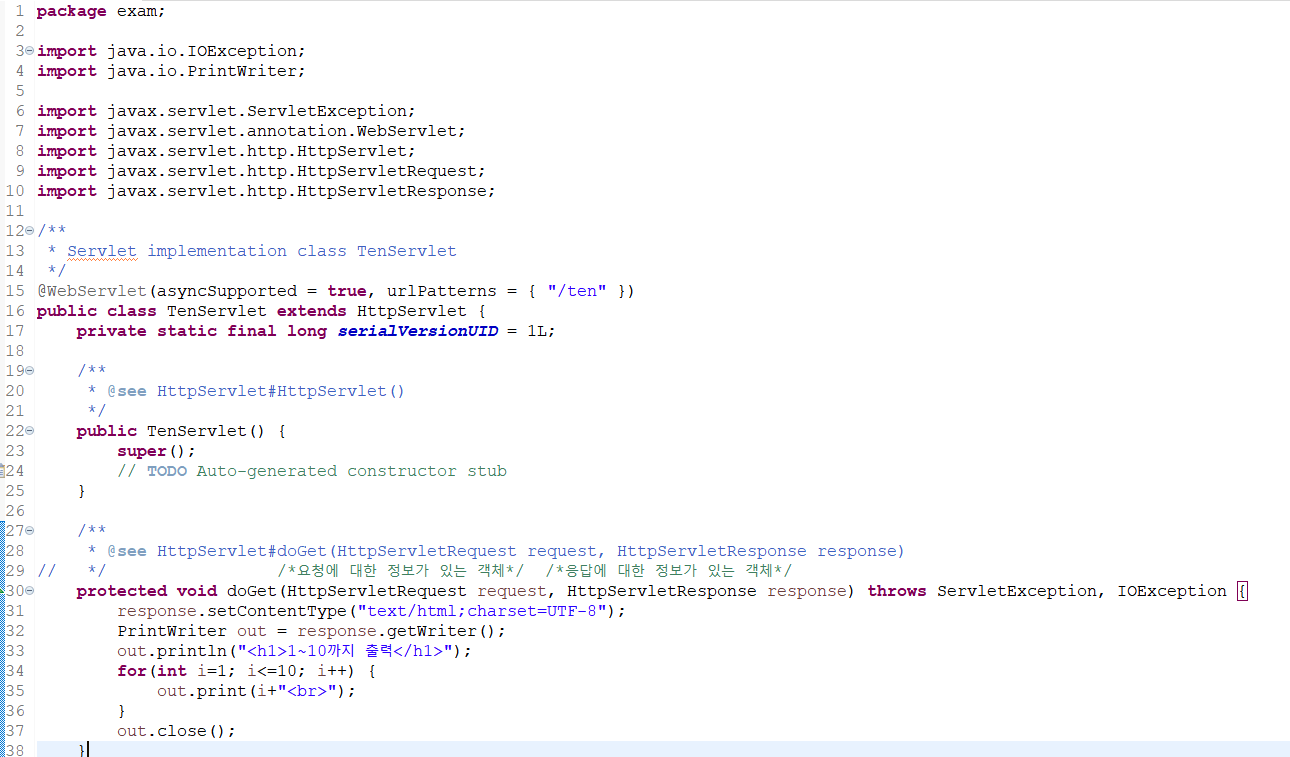 - 해당 프로젝트에서 1부터 10까지 출력하는 TenServlet을 작성