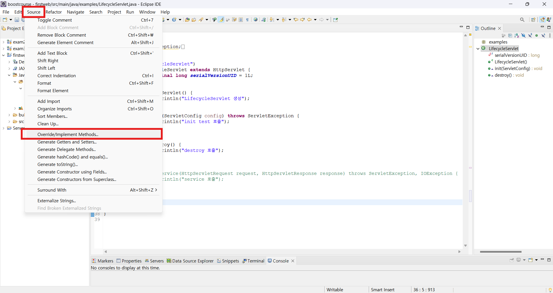 - HttpServlet의 3가지 메소드를 오버라이딩