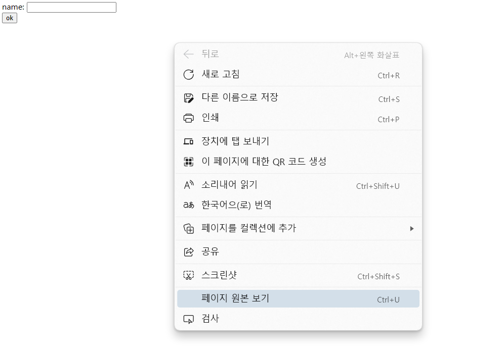 화면 우클릭 > 소스 보기 또는 페이지 원본 보기 클릭