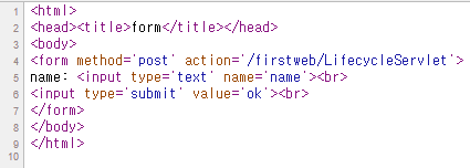 요청할때 메소드가 post방식으로 들어가면 method가 post값을 전달하고, 실제 service 메소드는 post가 들어왔기 때문에 doPost 메소드를 호출해서 doPost 안에 있는 내용이 출력되게 된다.