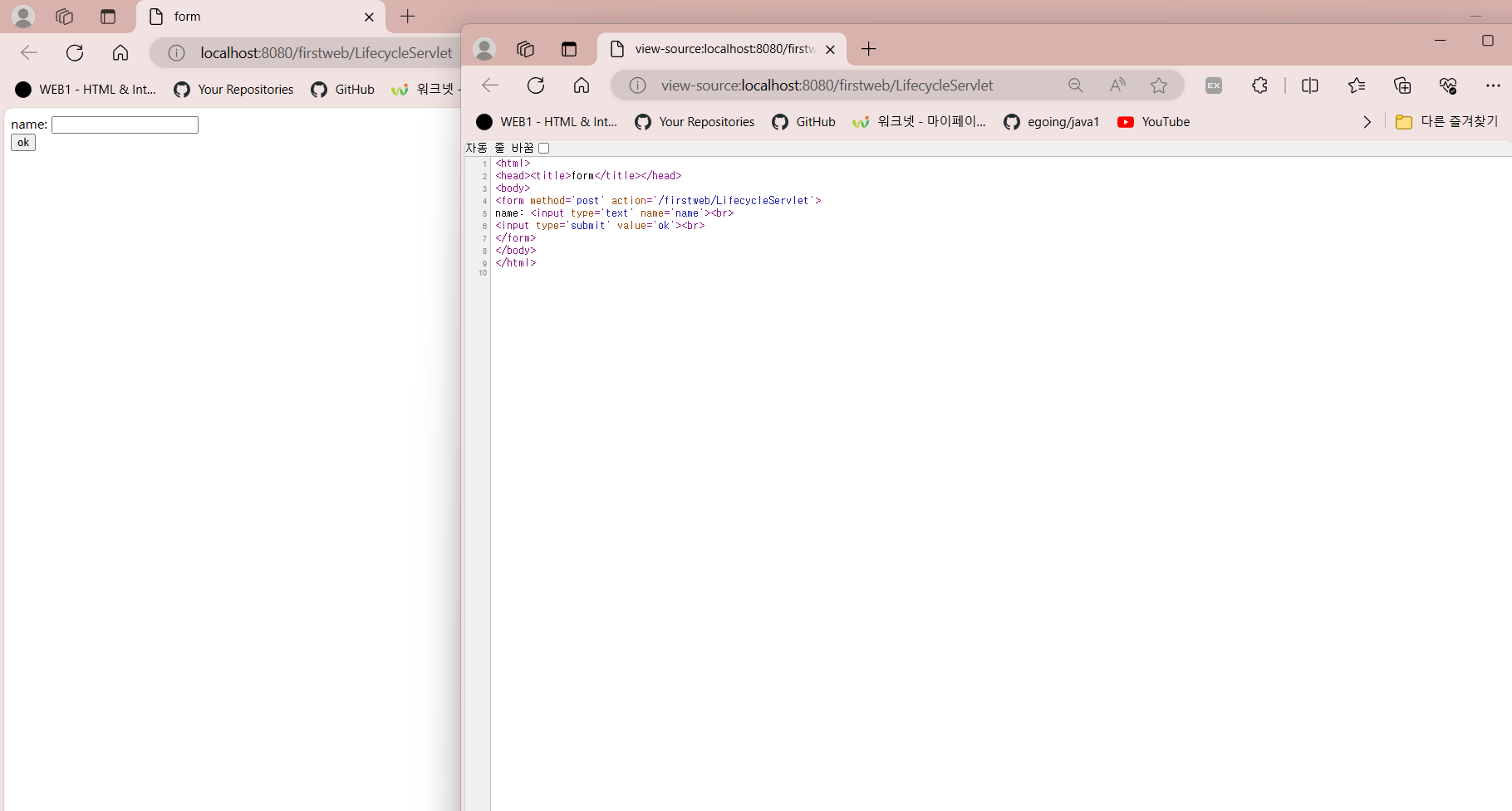 해당 servlet의 url 주소를 직접 입력하거나 링크를 클릭하는 것은 get방식으로 서버에 요청을 보내게 된다.
