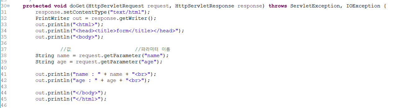 - class name : ParameterServlet