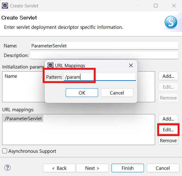 ParameterServlet을 만들어준다.