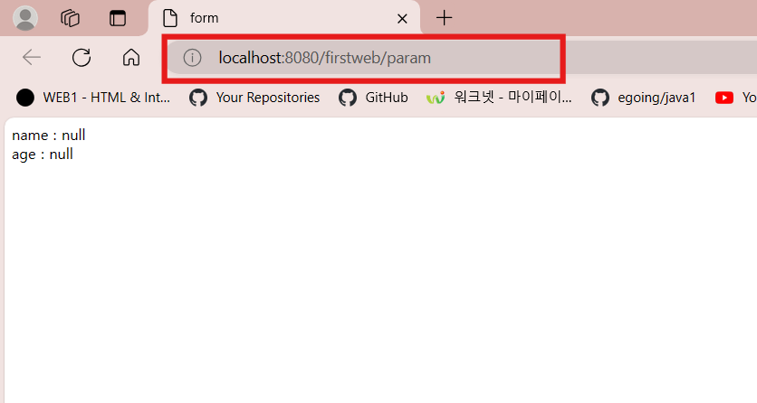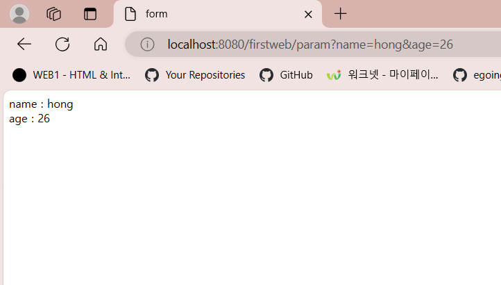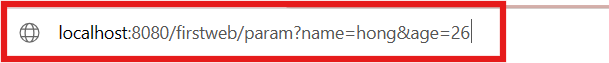 - http://localhost:8080/firstweb/param?name=hong&age=26
