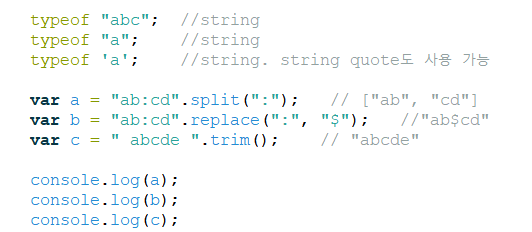 자바스크립트의 문자와 문자열은 같은 타입이다. 모두 문자열이다.