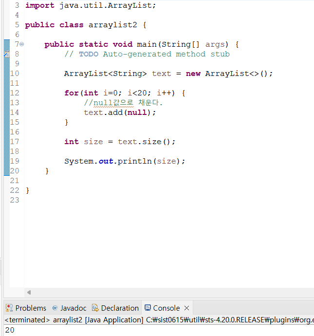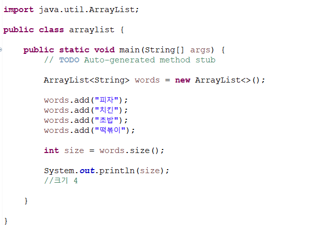 ArrayList에 저장된 논리적 공간의 크기