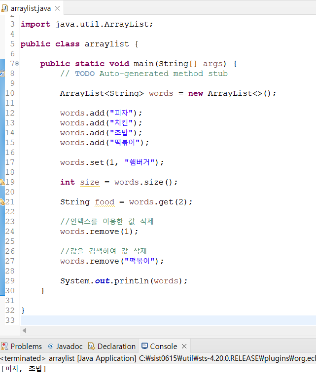 ArrayList의 값 삭제