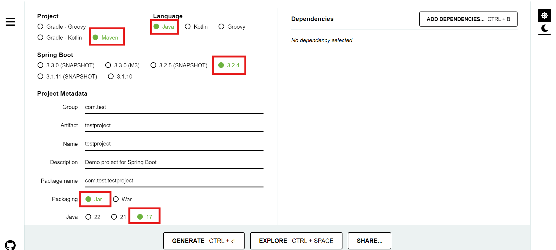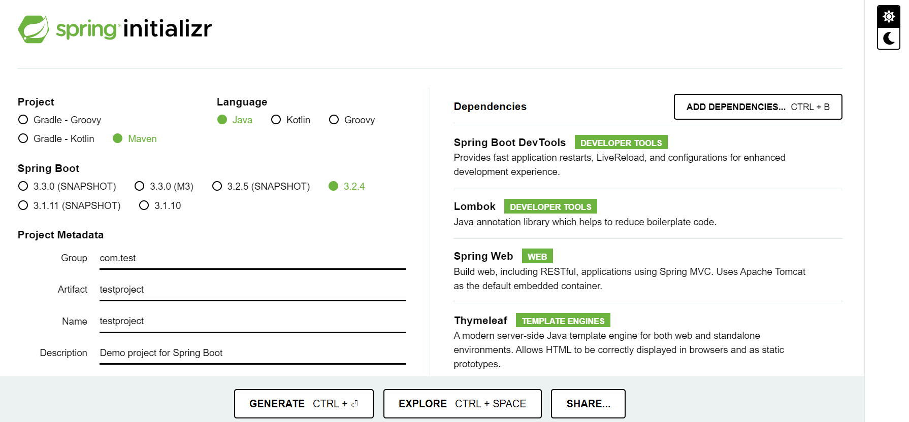 방법 1) Spring Initializr https://start.spring.io/