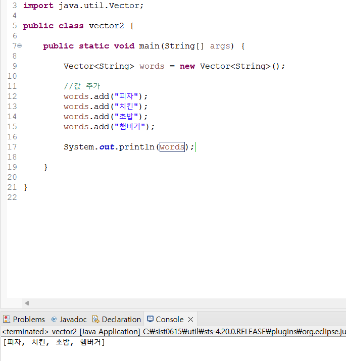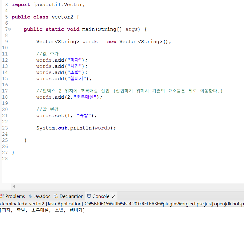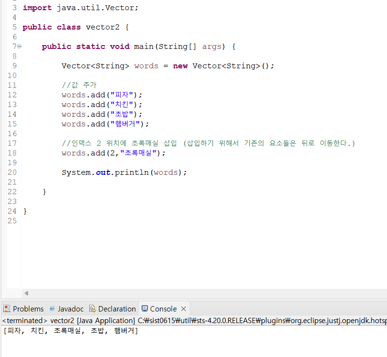 .contains() 벡터가 지정된 객체를 포함하고 있으면 true 리턴