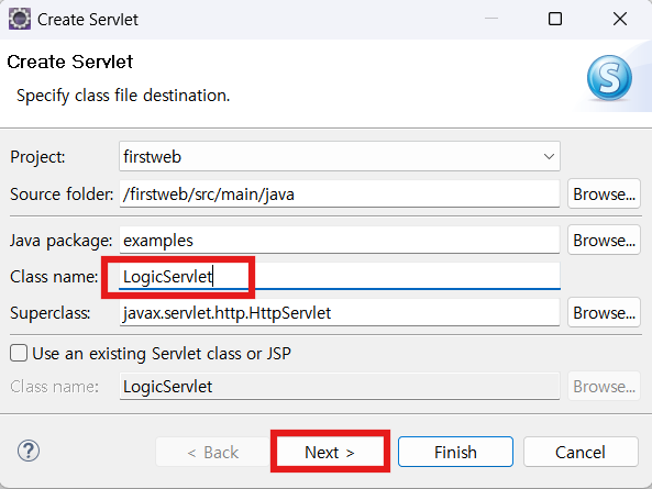 먼저 LogicServlet을 만들어준다.