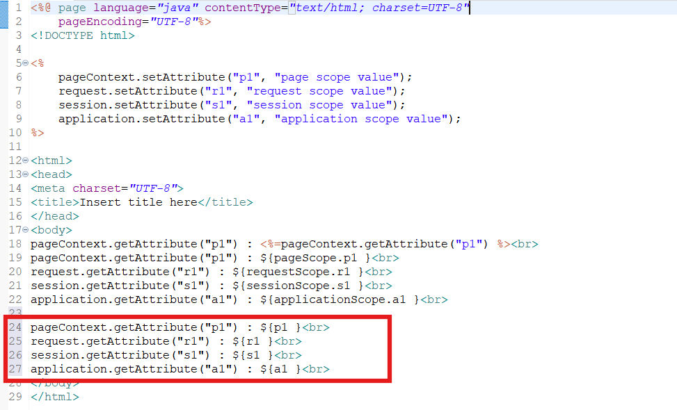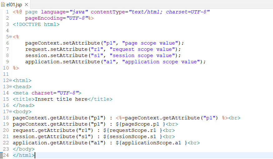 scope에 값을 설정해놓고, 설정한 값을 EL코드를 통해 출력
