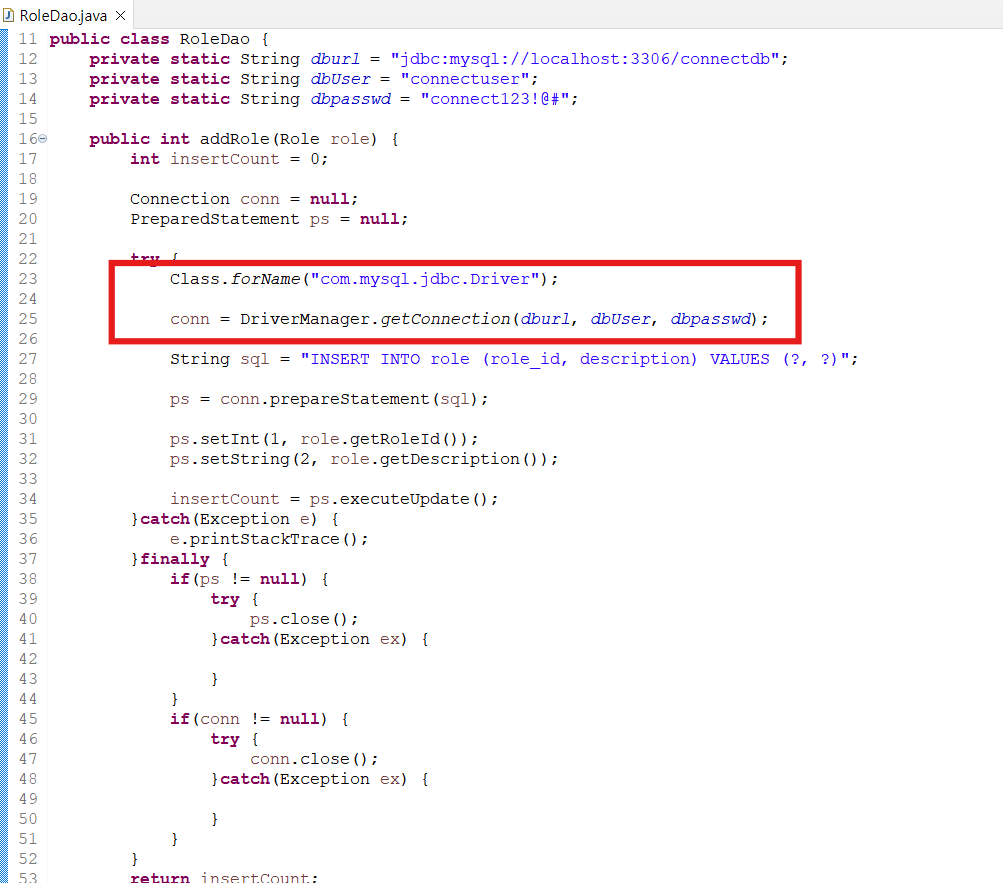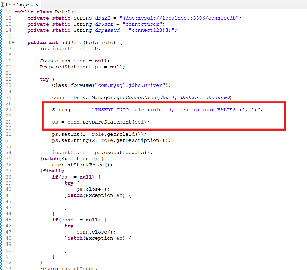 이때 쿼리문은 "INSERT INTO role (role_id, description) VALUES ( ?, ?)";이다.