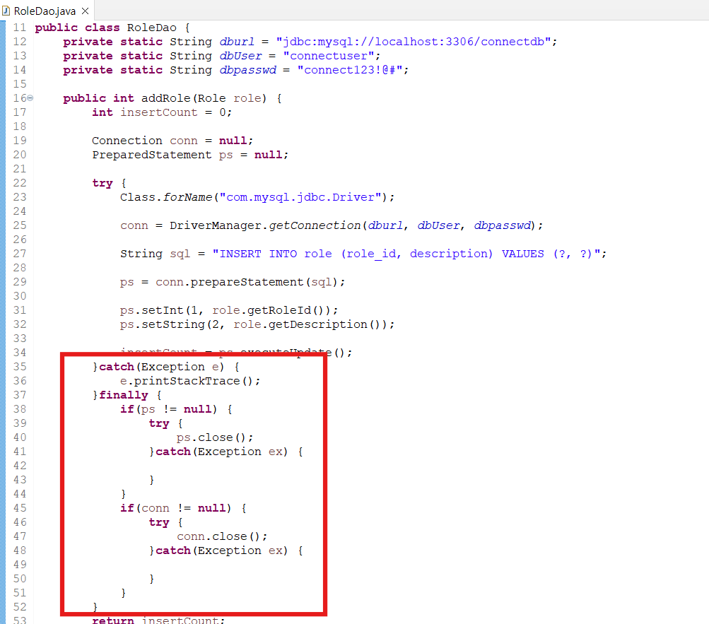insert문이기 때문에 resultSet은 없다. 따라서 두 개의 객체만 선언한다.