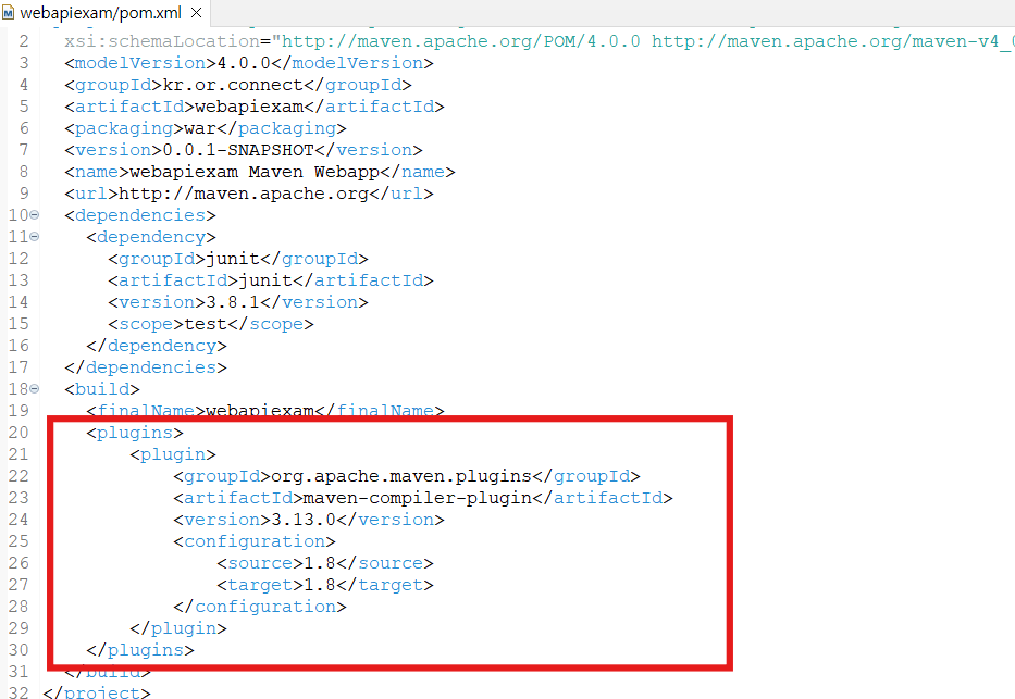 JDK1.8을 실행하기 위해서 pom.xml에 plugin을 추가해준다.