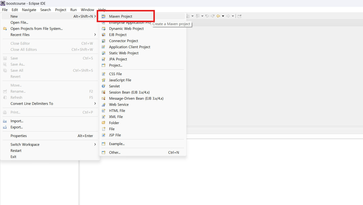 하지만 이클립스 최신 버전에 네비게이터 탭이 빠져서 아래와 같은 방법으로 진행한다.