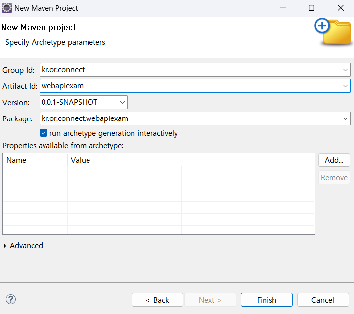 kr.or.connect.webapiexam.api 패키지를 만들어준다.