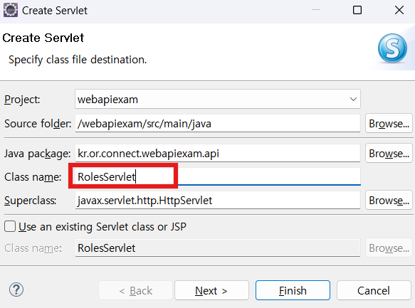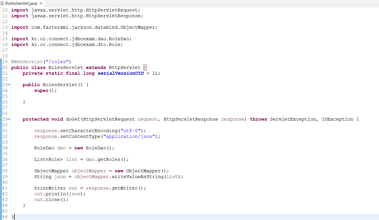 모든 role의 정보를 보여주는 RolesServlet 클래스를 만들어준다.
