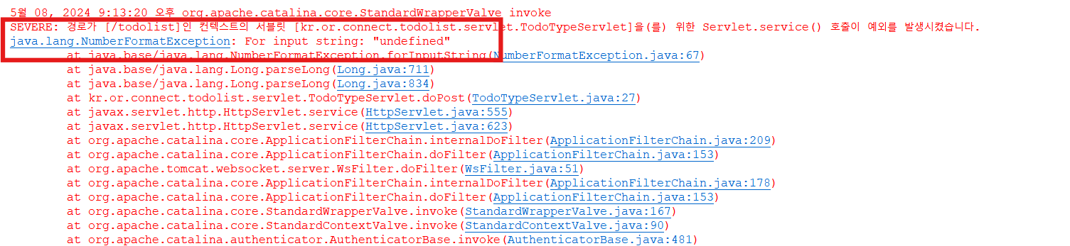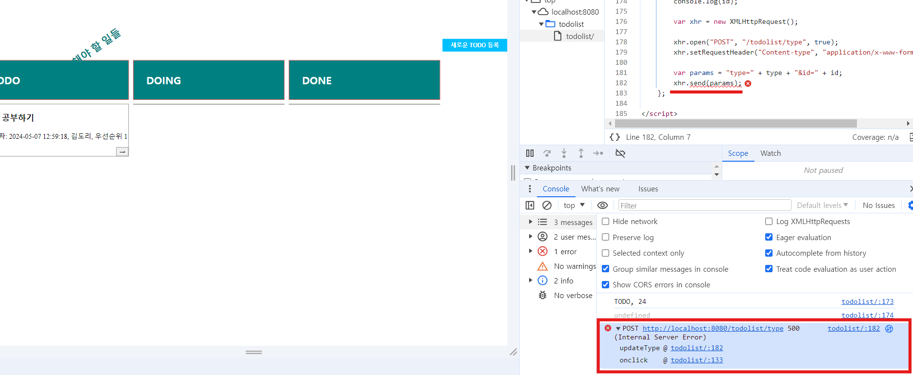 ${todo.type}와 ${todo.id}로 구성된 표현식으로 넘기는데 이 값들을 각각 따옴표로 묶어주지 않고 한 뭉텅이로 따옴표로 묶어 보냈기 때문. JavaScript에서 하나의 문자열로 인식되어 문제가 발생했다.