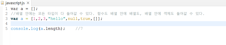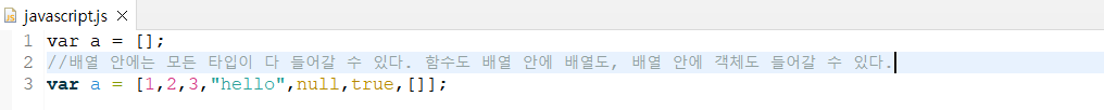 new Array() 문으로 선언할 수도 있지만 보통은 간단히 [] 를 사용한다.