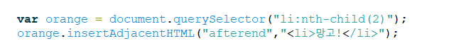 3) insertAdjacentHTML 메서드를 사용해서 orange와 banana 사이에 새로운 과일 추가하기
