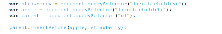 2) insertBefore 메서드를 사용해서 orange와 banana 사이에 새로운 과일을 추가하기