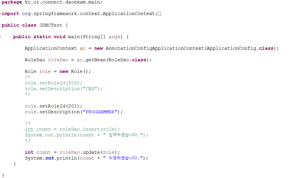 테스트를 하기 위해 main 패키지에 JDBCTest 클래스를 만들어준다.
