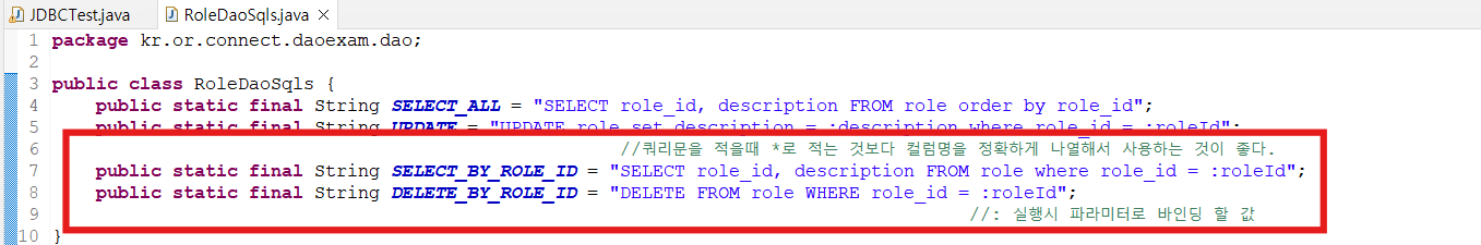 RoleDaoSqls에 사용할 쿼리문을 만들어준다.