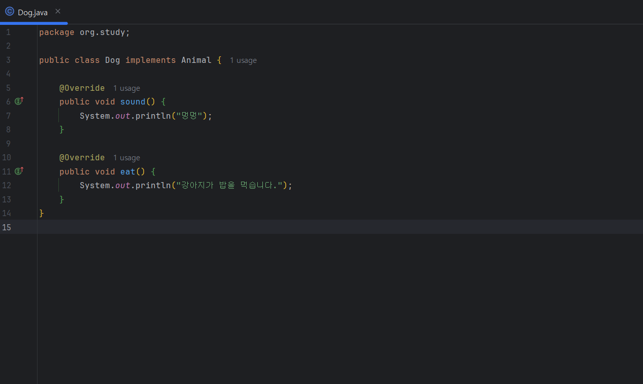 인터페이스를 직접 객체로 만들 수는 없고, 반드시 클래스가 implements로 구현해야 한다.